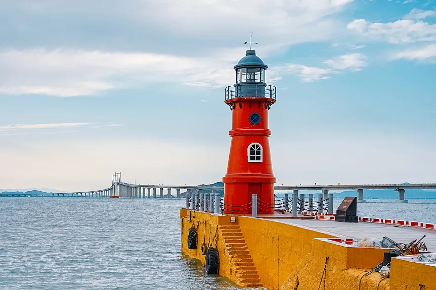 ◎前往游览【长山尾码头灯塔】30分种距离南澳大桥不远处,许多新人都会来此拍摄婚纱照,可见这个灯塔的颜值之高。
