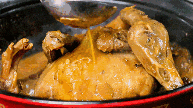 琳琅满目的全鹅宴摆上桌之后,我们才发现,鹅全身都是宝。鹅骨架用来熬汤做火锅汤底,鹅肉被剁成了鹅肉丸,反而是鹅肠、鹅肝、鹅肾等内脏被处理成薄片,用来涮着吃。