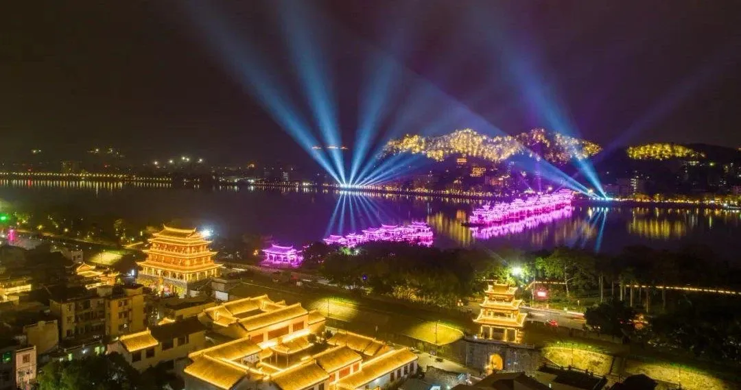 广济楼,一个位于潮州湘桥区滨江长廊上的地标建筑,是潮州八景之一的“龙舟汇漳”。它始建于明洪武三年(1370年),经过明清两代的维护及修复,扩展为一座融合明、清两代风格特点的古建筑。作为古城区最醒目的标志性建筑之一,广济楼已经矗立在这里600余年。