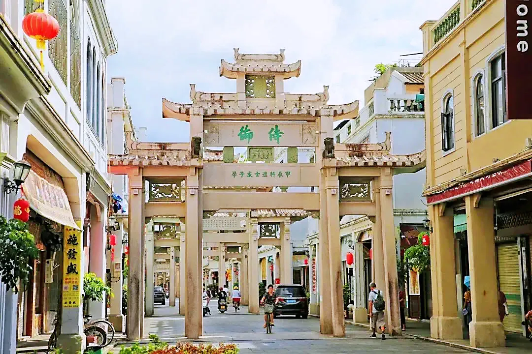 潮州牌坊街是全国独一无二的文化景观,位于古城中心,是集非物质文化遗产、传统工艺、特色小吃等为一体的文化古街。 牌坊街特色建筑是中西合璧的骑楼,矗立的22座中式明清石牌坊与两侧南洋风味的骑楼互为映衬,明末清初引入具有南洋建筑风格的骑楼建筑,形成中西合璧的独特侨乡风貌。