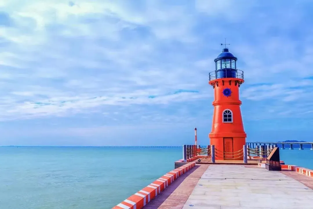 长山尾灯塔,唯一能看到南澳大桥的灯塔,通红的塔身,让人无法忽视它的存在。它位于长山尾码头,挨着启航广场。如长龙一般的跨海大桥,浩瀚的大海和不远处若隐若现的小岛,宛如童话世界。