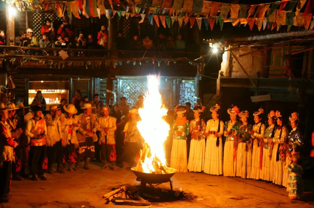 漫步泸沽湖畔观日落,傍晚体验【走婚宴】-是摩梭人的民族餐,摩梭人节日或婚礼上才能品尝到的特色美食餐;晚上参加最具特色的【摩梭篝火晚会】这里的摩梭人,至今保持着母系社会的传统,和走婚的习俗。他们个个能歌善舞,在劳作之余,常举办篝火晚会。既是娱乐也是青年男女,寻找走婚对象的机会。所以个个盛装出席。晚会开始,燃起篝火,响起音乐,随着节拍,男人的舞姿,刚健有力,凸显男儿本色。女人翩翩起舞,阿娜多姿,萧飒飘逸。