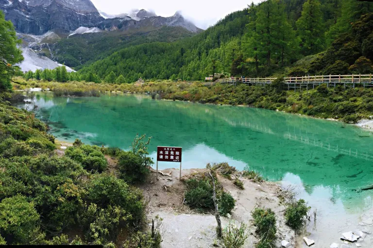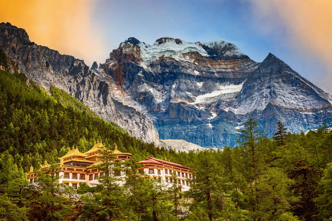 【五色海】是个高山湖泊,位于康定南面海拔4600米的拉姆兹山,三面环山,由于光的折射下,产生五种不同颜色而得名。是藏区著名的圣湖,据传能“返演历史,预测未来”实在上不去的客人,乘电瓶车返回冲古寺,游览【冲古寺】-贡嘎冲古寺位于仙乃日雪峰脚下,意为填湖造寺,海拔3880米,始建于元朝,是通往“三怙主神山”——仙乃日、央迈勇、夏诺多吉的必经之处,也是当地藏族人民转山仪式的出发点。