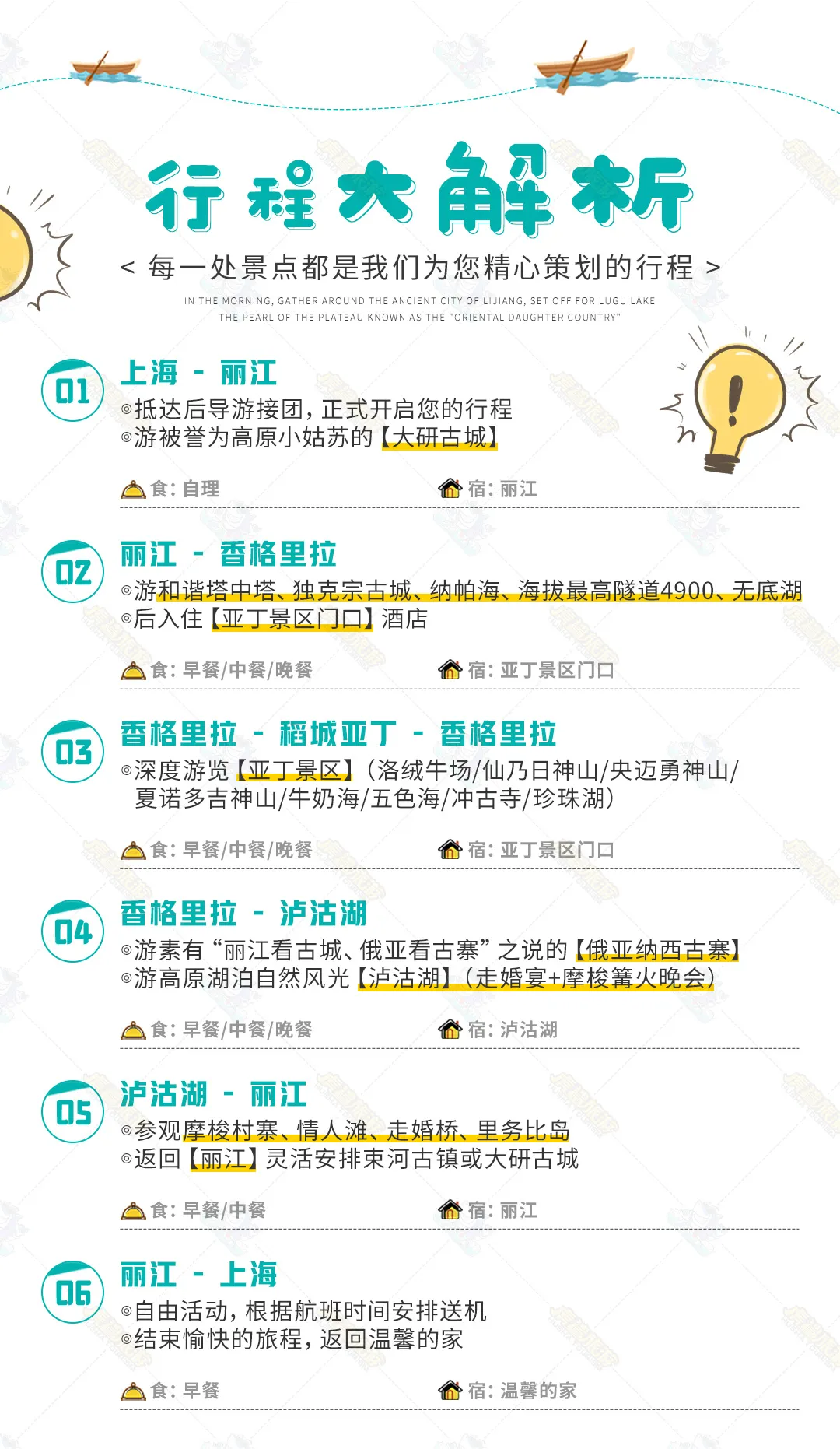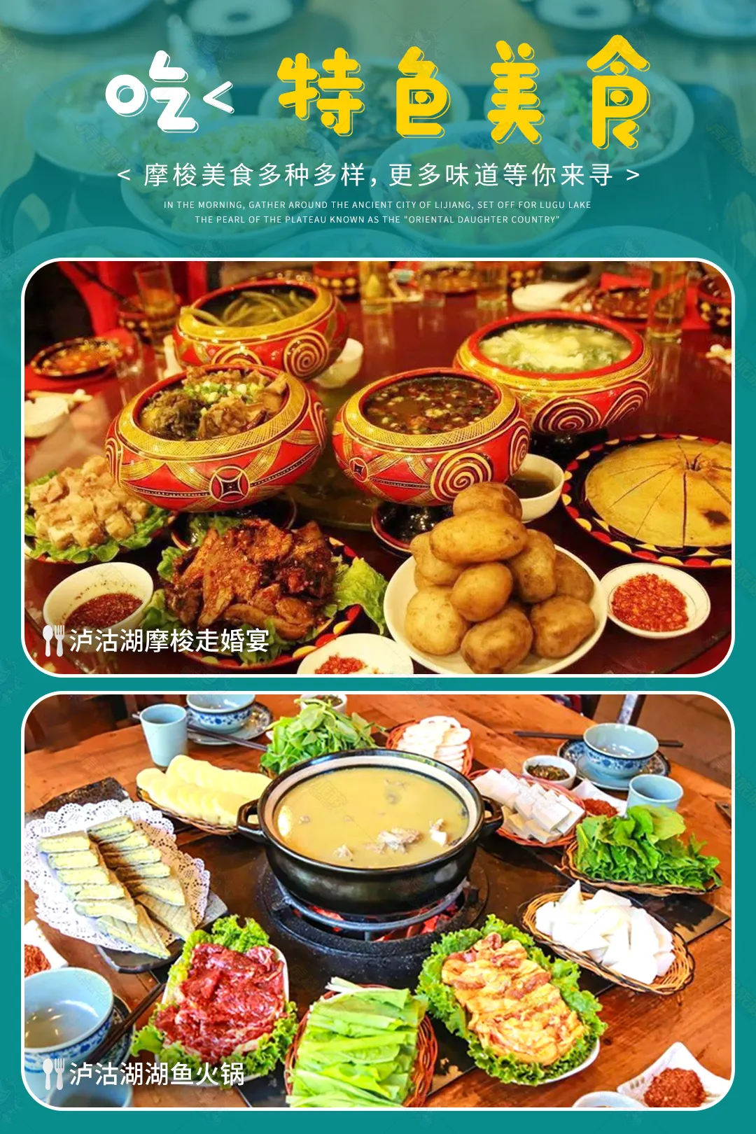 【用 餐】全程5早7正餐(餐标40元/人/餐),其中亚丁景区午餐为自热米饭套餐,两个特色餐:泸沽湖摩梭走婚宴,泸沽湖湖鱼火锅;(如因客人自身原因不用,费用不退);